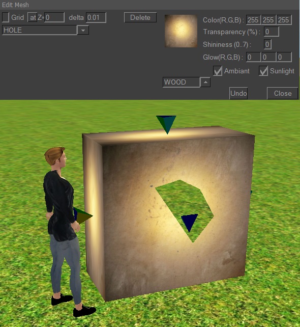 To delete a point click on the Delete button, if you delete all points the hole disappears.